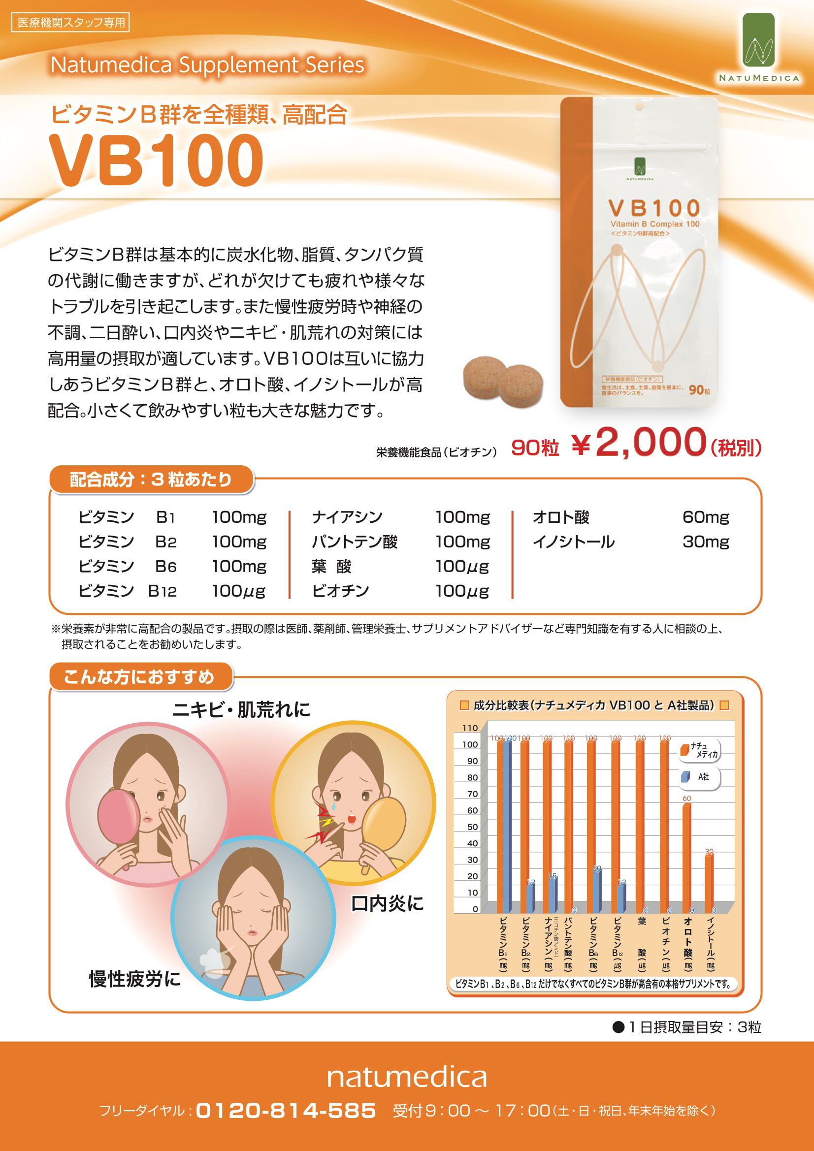 ナチュメディカのVB100はこれらの条件を満たすよう配合や形状にこだわって開発しました。