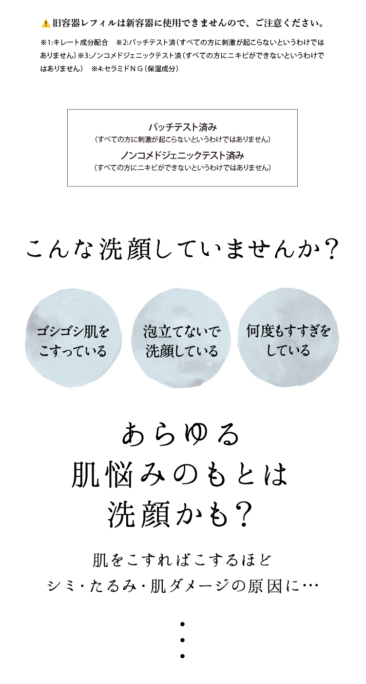 必要なものだけを残す処方 洗顔後の肌をうるおすセラミド配合。 余分な成分を極力省き、洗い上がりはつっぱりにくくしっとり。