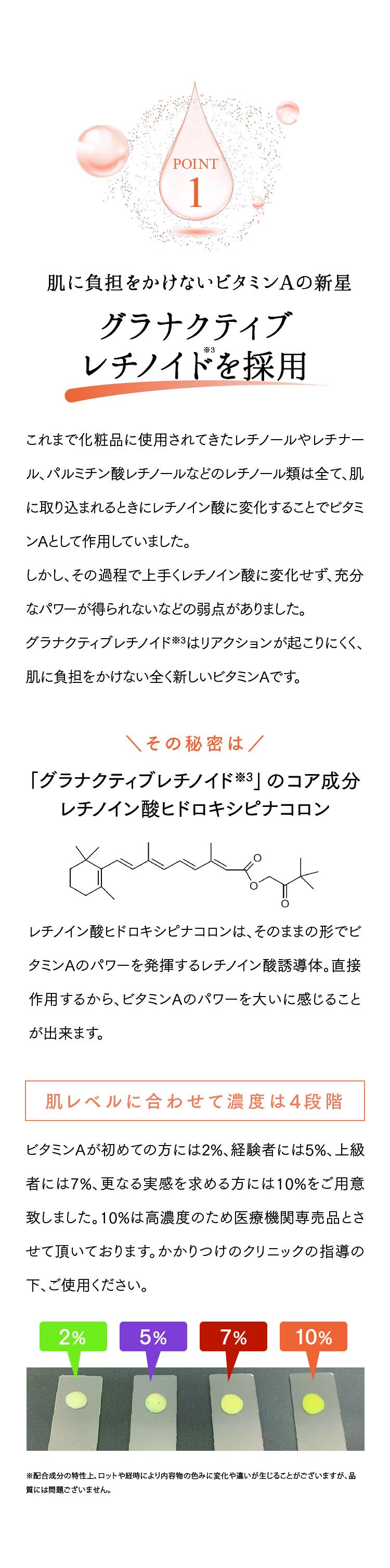 特徴 ビタミンA界の新星 グラナクティブレチノイドを10%配合。