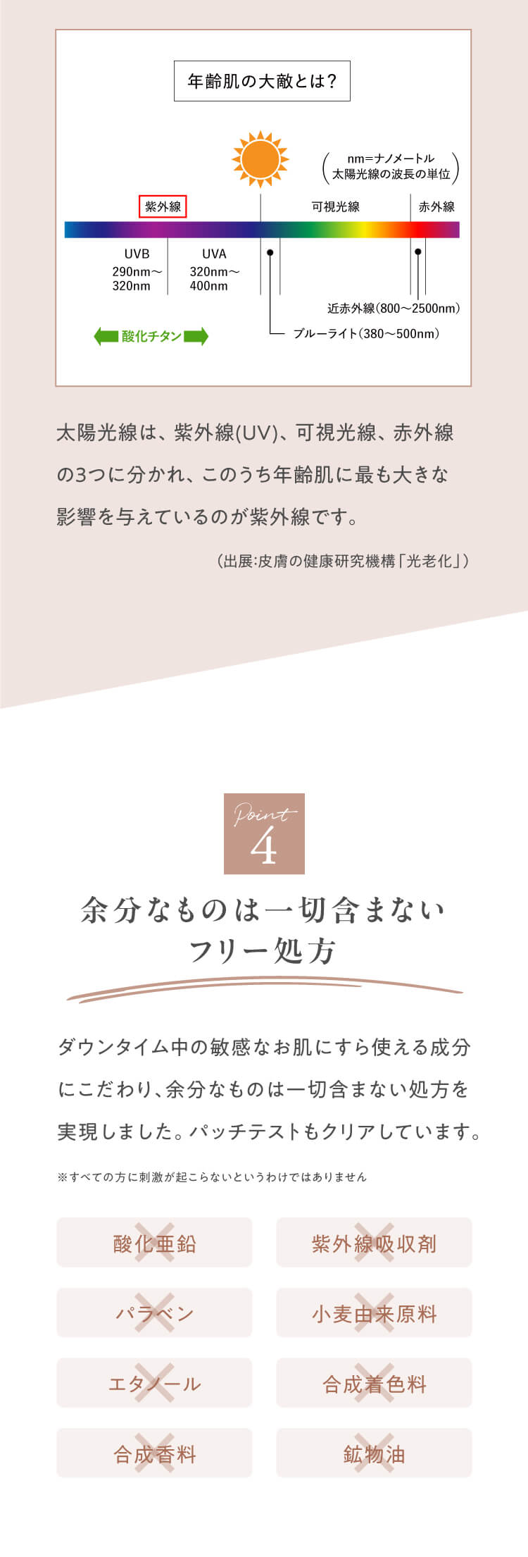 (2)使用したお肌に、直接日光があたって上記のような異常があらわれた場合