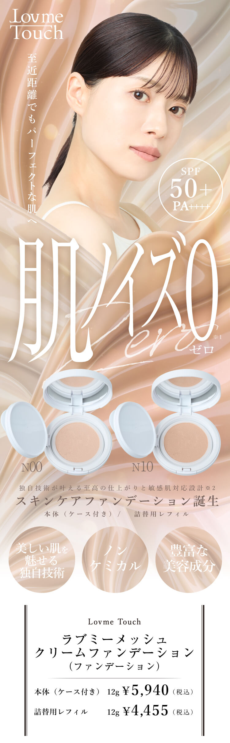 商品名 ラブミータッチ ラブミーメッシュクリームファンデーション SPF50+ PA++++N00レフィルN01レフィル