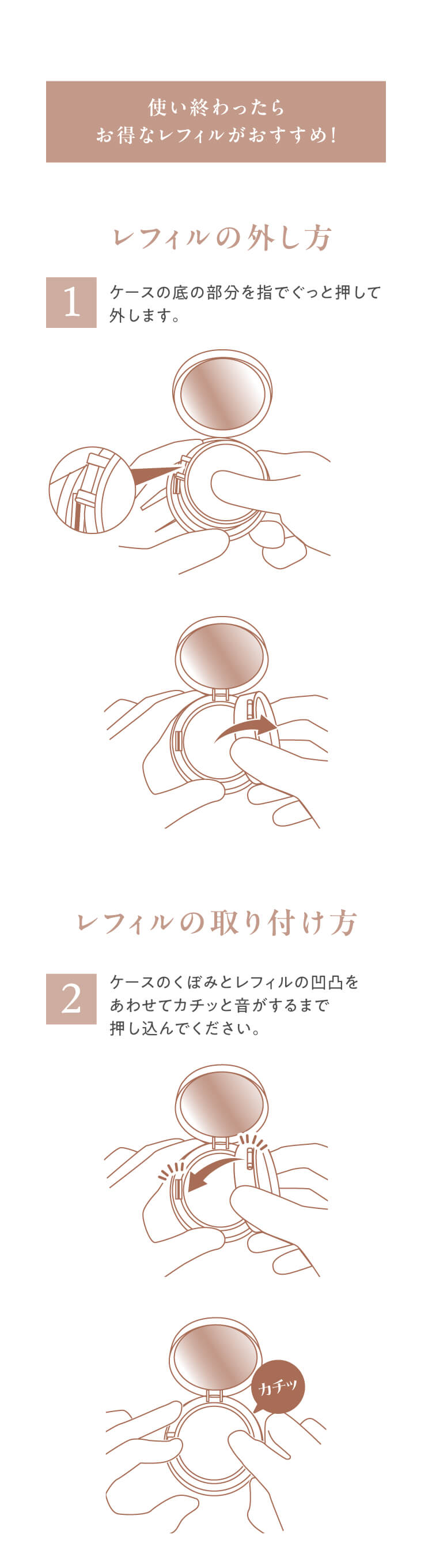 お気に入りのケースをそのまま使えて、環境にも配慮できるレフィルタイプ。仕上がりの美しさと肌へのやさしさを、毎日のメイクで継続して実感できます。