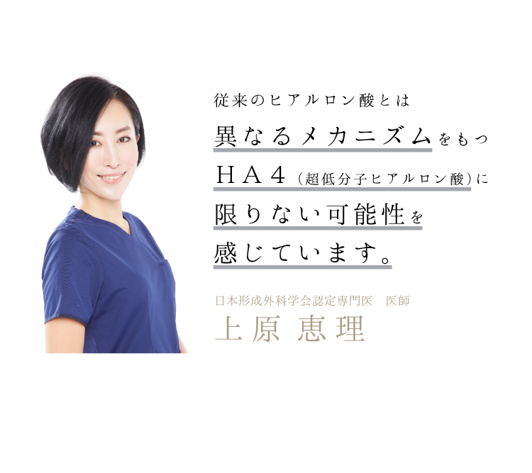 特徴 上原恵理医師監修の機能性表示食品が登場。内側からうるおいで肌を満たす、"のむ"ヒアルロン酸HA4サプリメント。小粒タイプで飲みやすく、毎日手軽に1日の摂取目安量120mgを摂取できます。