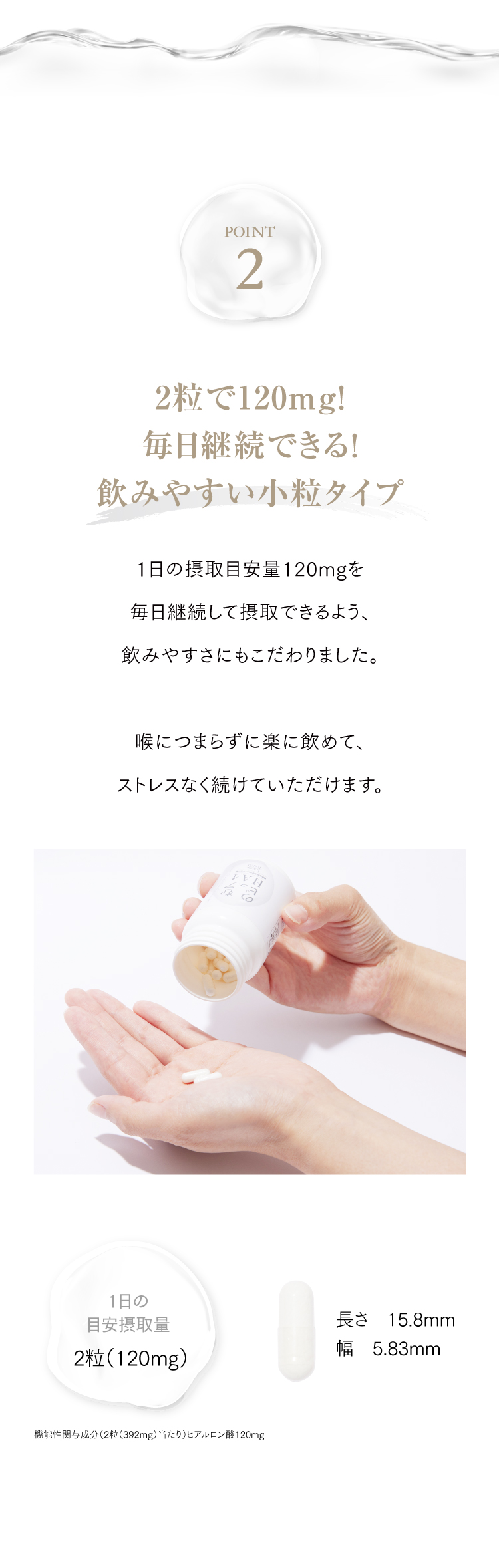 機能性関与成分 ヒアルロン酸 120mg(2粒(392mg)当たり)