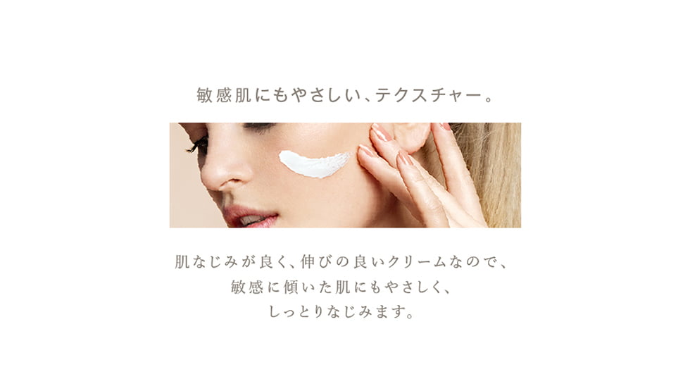 毎日のケアに取り入れることで、刺激に負けない、なめらかでうるおいに満ちたストレスフリーな肌を目指せるクリームです。