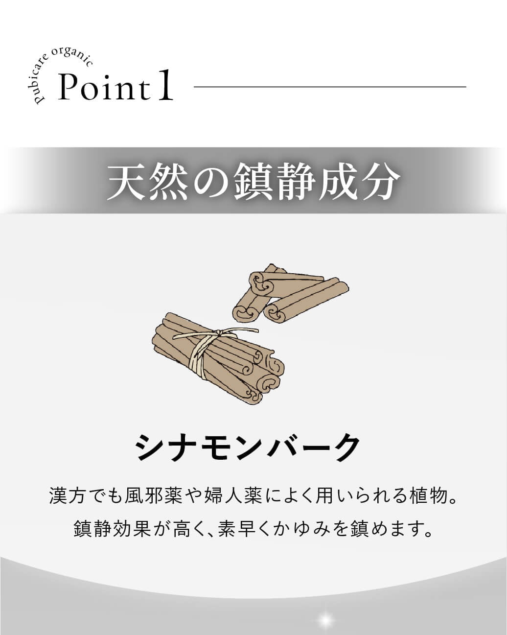 鎮静と保湿に特化したオーガニック成分が素早くアプローチします。