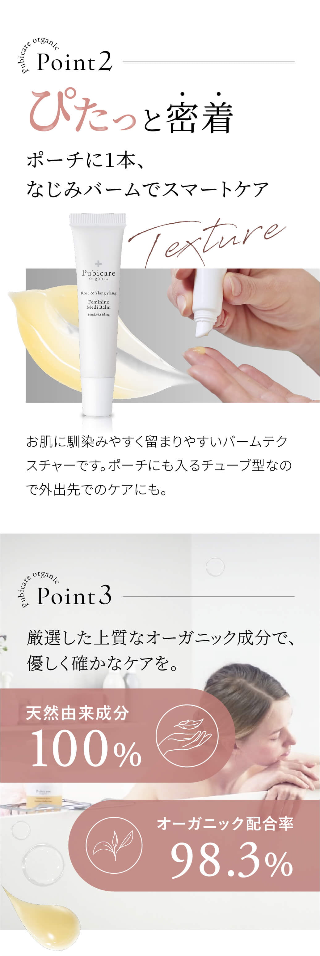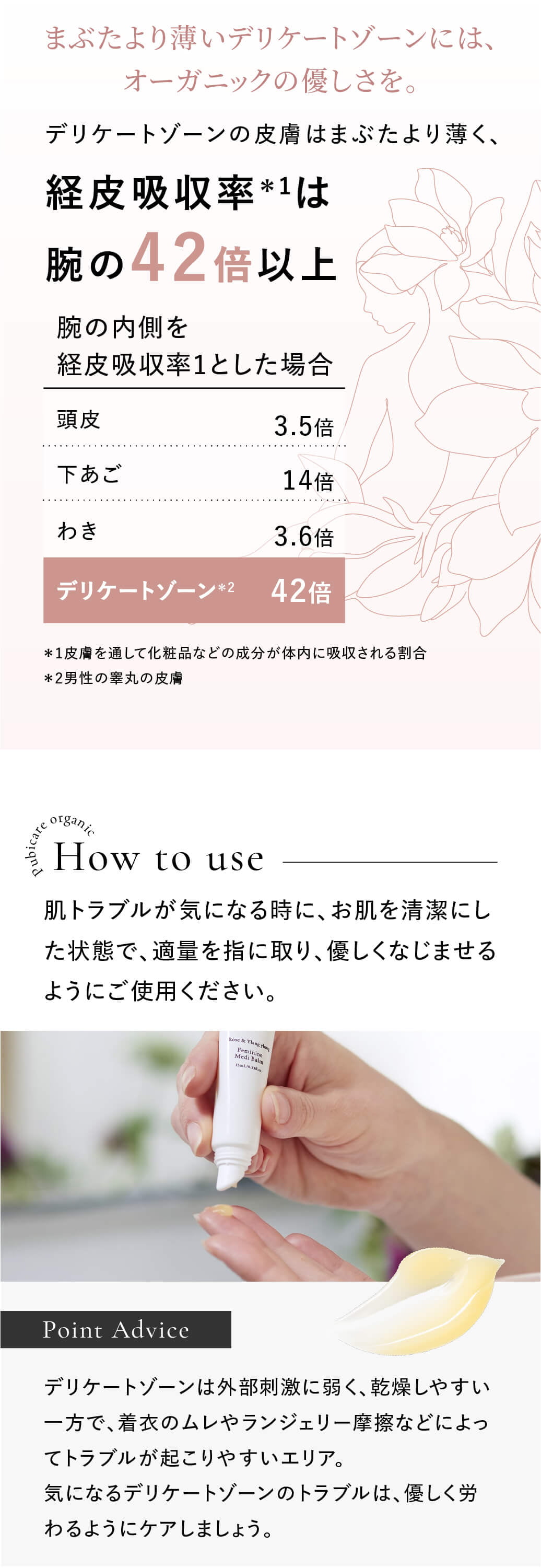 特徴 デリケートゾーンの不快感をケアするマルチバーム。