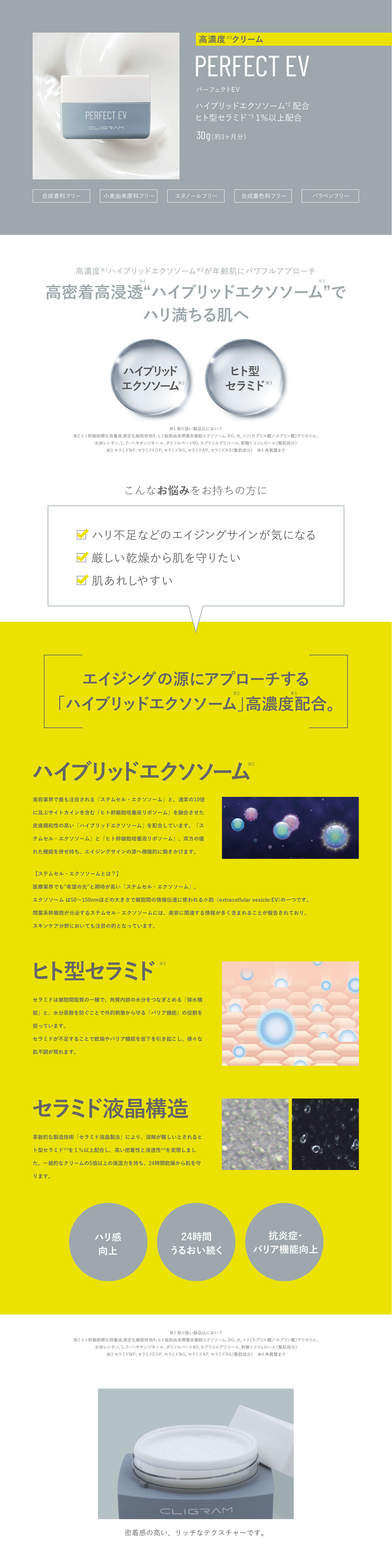 特徴 高密着高浸透“ハイブリッドエクソソーム”でハリ満ちる肌へ導きます